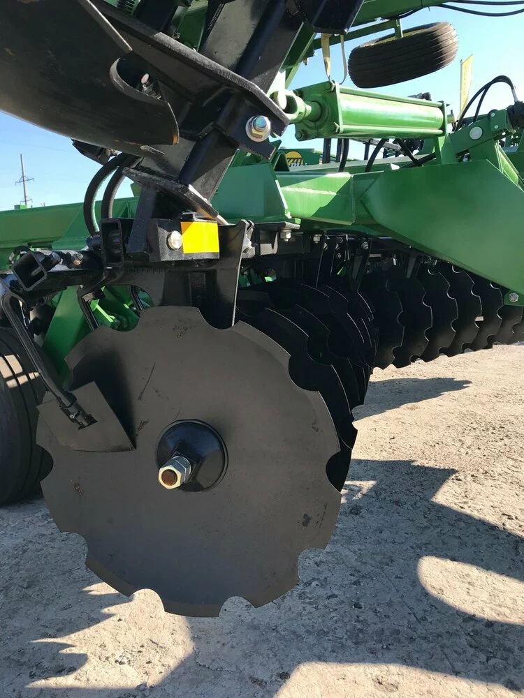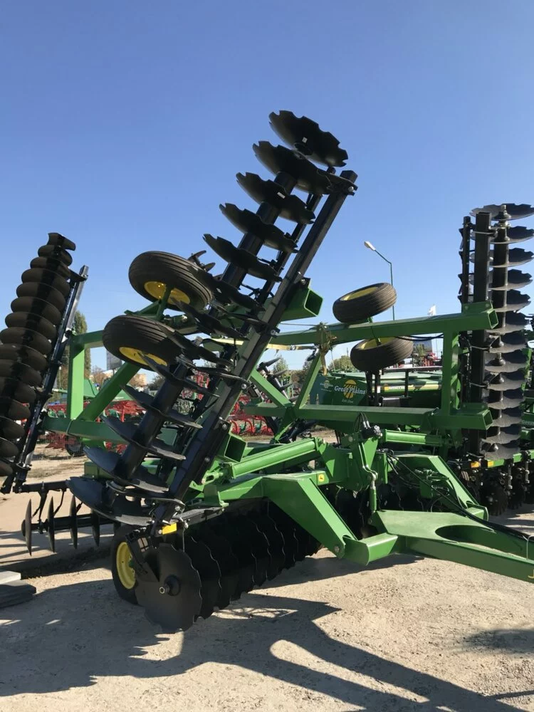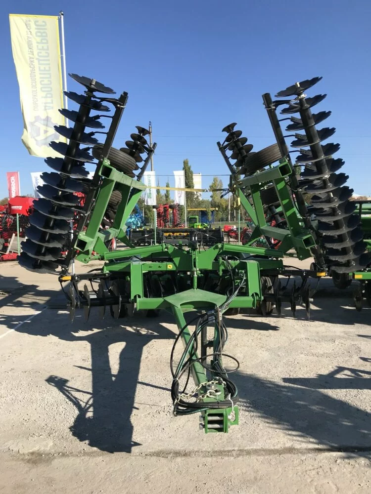 При традиційній обробці грунту дуже важливо якісно подрібнювати і закладати рослинні залишки. Якщо ці операції не виконуються, то існує ризик нещільного контакту між зерном і грунтом, оскільки надмірна кількість рослинних залишків уповільнює проростання насіння. Борона 630 здійснює інтенсивне забивання рослинних залишків і може застосовуватися спільно з наступними знаряддями для обробітку грунту, борона Джон Дір 630, що застосовується спільно з іншими знаряддями «Джон Дір», являє собою комплексне грунтообробне обладнання. Технічні характеристики Відмінно обробляє шар рослинних залишків Поздовжнє і поперечне вирівнювання машини Конструкція з подвійних батарей Робоча швидкість 8-12 км / год Комбіновані чистики дисків складається рама Ширина захоплення 9 м. Глибина обробки до 25 см.